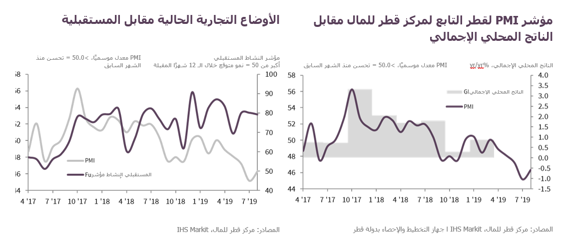 شهدت دراسة مؤشر مديري المشتريات الأخيرة لاقتصاد القطاع الخاص القطري غير المرتبط بالطاقة تعافيًا في الأوضاع التجارية بشكل عام في أغسطس بعد أن فقد زخمه مؤقتًا في شهر يوليو. وشهدت مؤشرات الإنتاج والأعمال الجديدة والتوظيف والمشتريات جميعها ارتفاعًا، مع بقاء توقعات الـ 12 شهرًا المقبلة لإجمالي النشاط التجاري إيجابية بقوة. كما أشارت بيانات الدراسة الأخيرة إلى تراجع ضغوط التكلفة، ما سمح للشركات بتخفيض الأسعار مرة أخرى بعد توقف مؤقت في شهر يوليو.