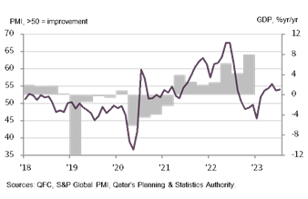 مؤشر PMITM لقطر التابع لمركز قطر للمال مقابل الناتج المحلي الإجمالي