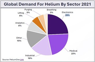 Helium is critical to various industries, with the largest demand coming from the electronics (25%), medical (23%), and industrial (18%) sectors. Its chemical stability, low density, and extremely low boiling point, makes it uniquely suited for sensitive applications, such as semiconductor and fibre optic manufacturing, cryogenic fuel storage for satellites and space probes, cooling superconducting magnets in MRI machines, and precision leak detection in submarines, missile systems, and high-pressure fuel lines.