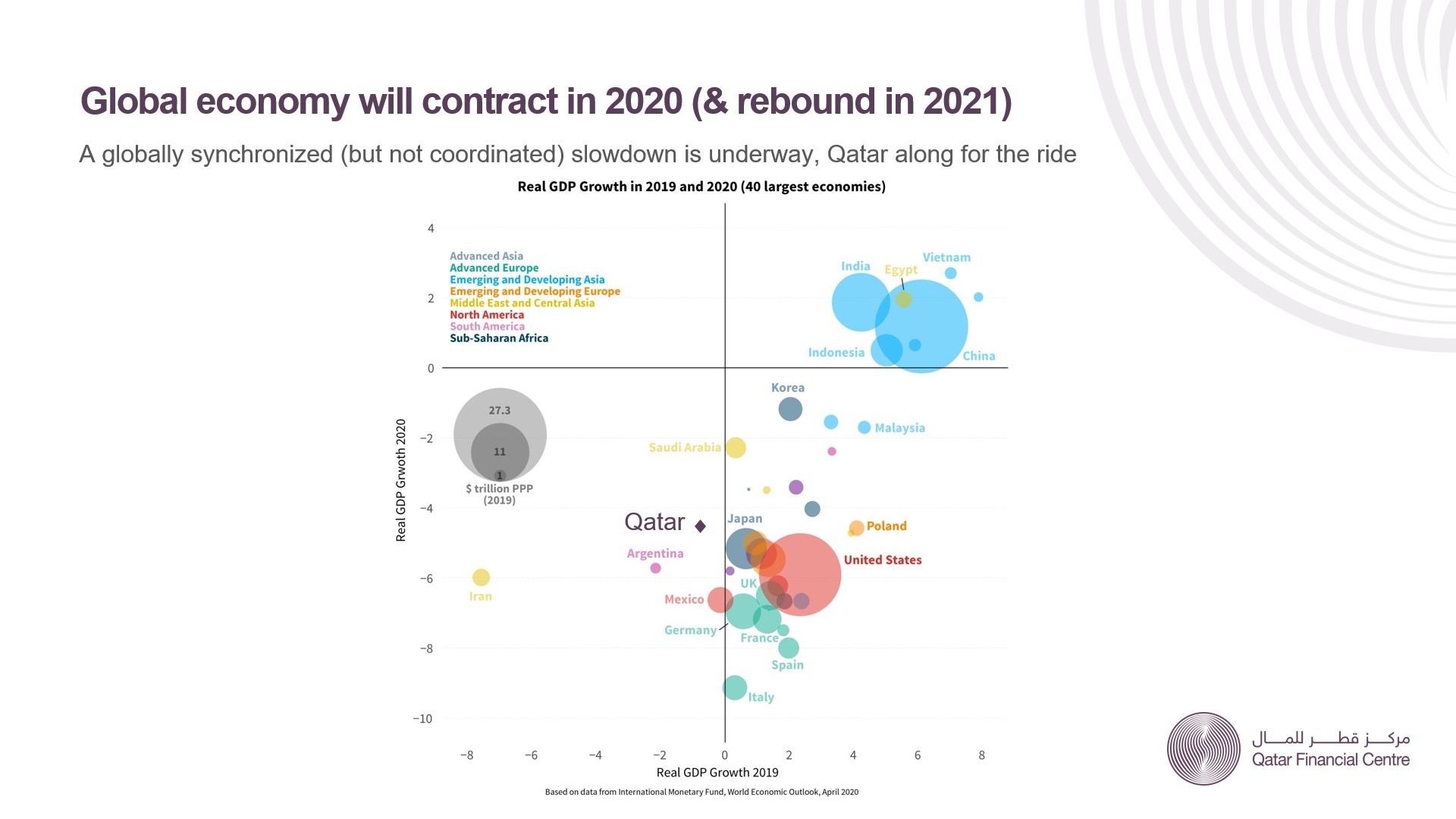 Qatar is no exception to the majority of large global economies expected to contract this year, with an IMF projection to contract by 4.3% in 2020 due to the ongoing crisis.
